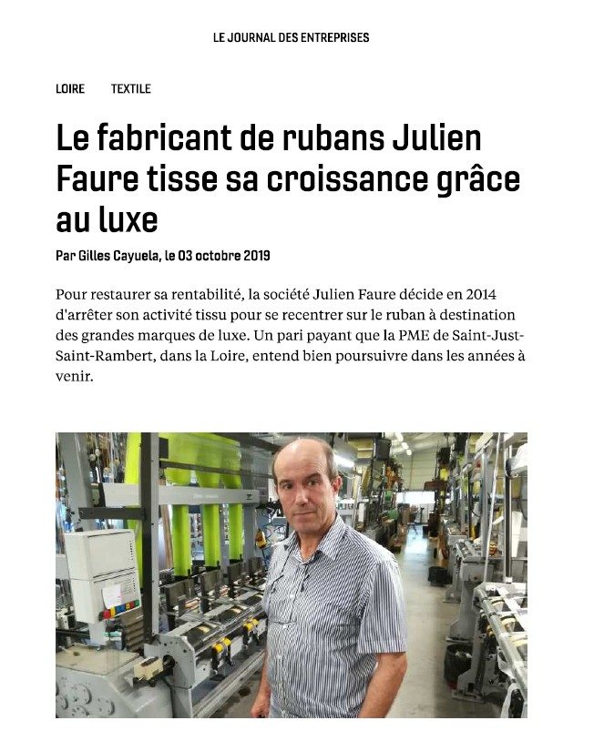Pour restaurer sa rentabilité, la société Julien Faure décide en 2014 d’arrêter son activité tissu pour se recentrer sur le ruban à destination des grandes marques de luxe.